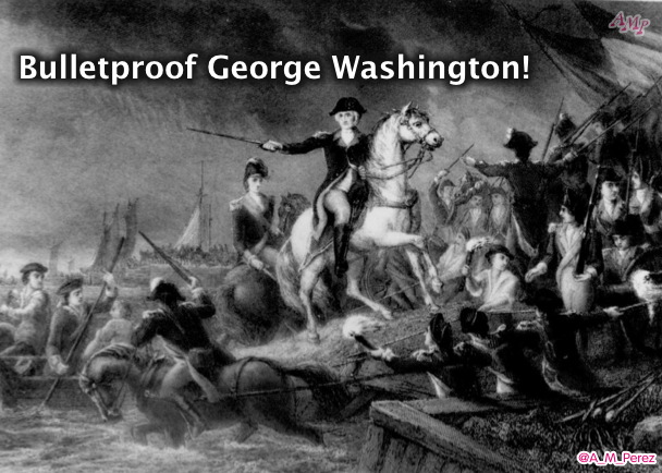 This all occurred before the Declaration of Independence. Now, on to the Revolutionary War. Washington, unlike many generals, actually lead the armies from the front. This is a habit that you would think only a bulletproof general would adopt. In battle after battle, Washington came out unscathed where he should have been riddled with bullets. Just focusing on the most miraculous escapes from death, let’s jump 2 years into the Revolutionary war into 1777.